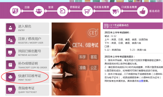 (1)点击网址进入全国大学英语四、六级考试网站:http://cet-bm.neea.edu.cn/。