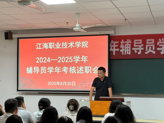开学在即,为切实加强我校辅导员队伍建设,推动学生思想政治工作高质量发展,2025年8月30日,学生工作处在尚技楼E202教室召开了2024—2025学年辅导员学年考核述职会。全体专兼职辅导员、学工副院长、学生工作处和团委相关人员参加了会议。会议由学生工作处陆峰主持。