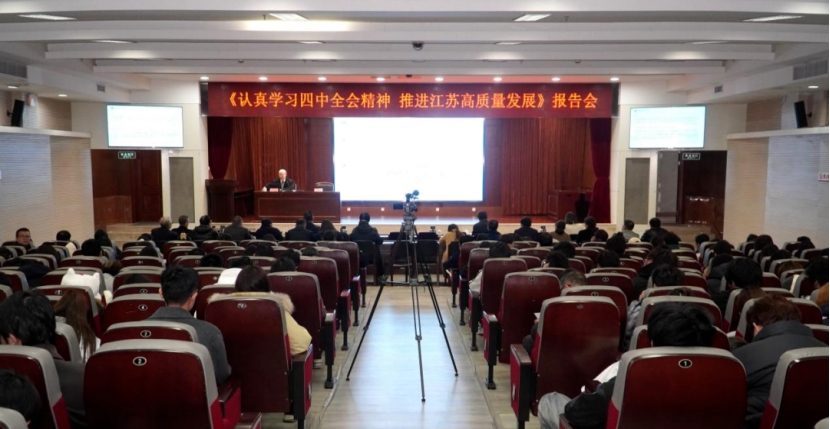 11月24日下午,我校根据省委教育工委工作部署,邀请江苏省社会科学院原党委委员、副院长吴先满研究员,以《认真学习四中全会精神推进江苏高质量发展》为题,作形势任务报告。党委副书记陈荣华主持报告会。