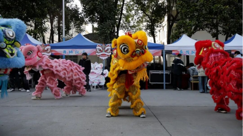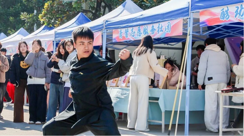 视觉暴击:舞龙社的灵动翻飞、舞狮社的威武萌趣、酷动体育社的帅气动作、文创设计社团的精致作品,引得同学们阵阵欢呼,拍照打卡几乎停不下来。