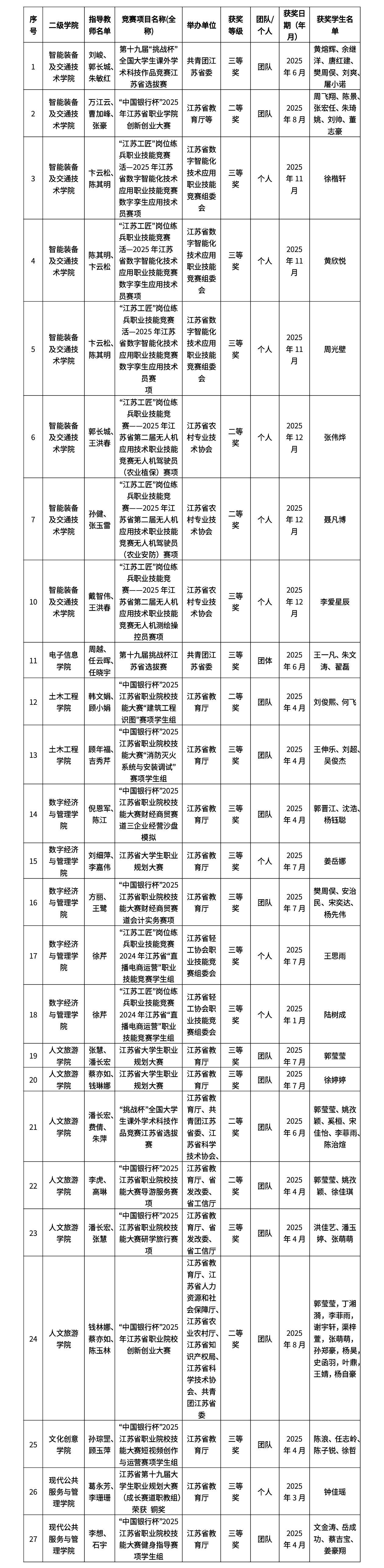 2025年,我校在国家、省级及以上赛事获奖共计139项(304人次)。其中,国家级赛事目录内竞赛获奖21项(78人次),省级赛事目录内竞赛获奖118项(260人次)。其中,省级A类竞赛获28项(78人次),具体情况如下。