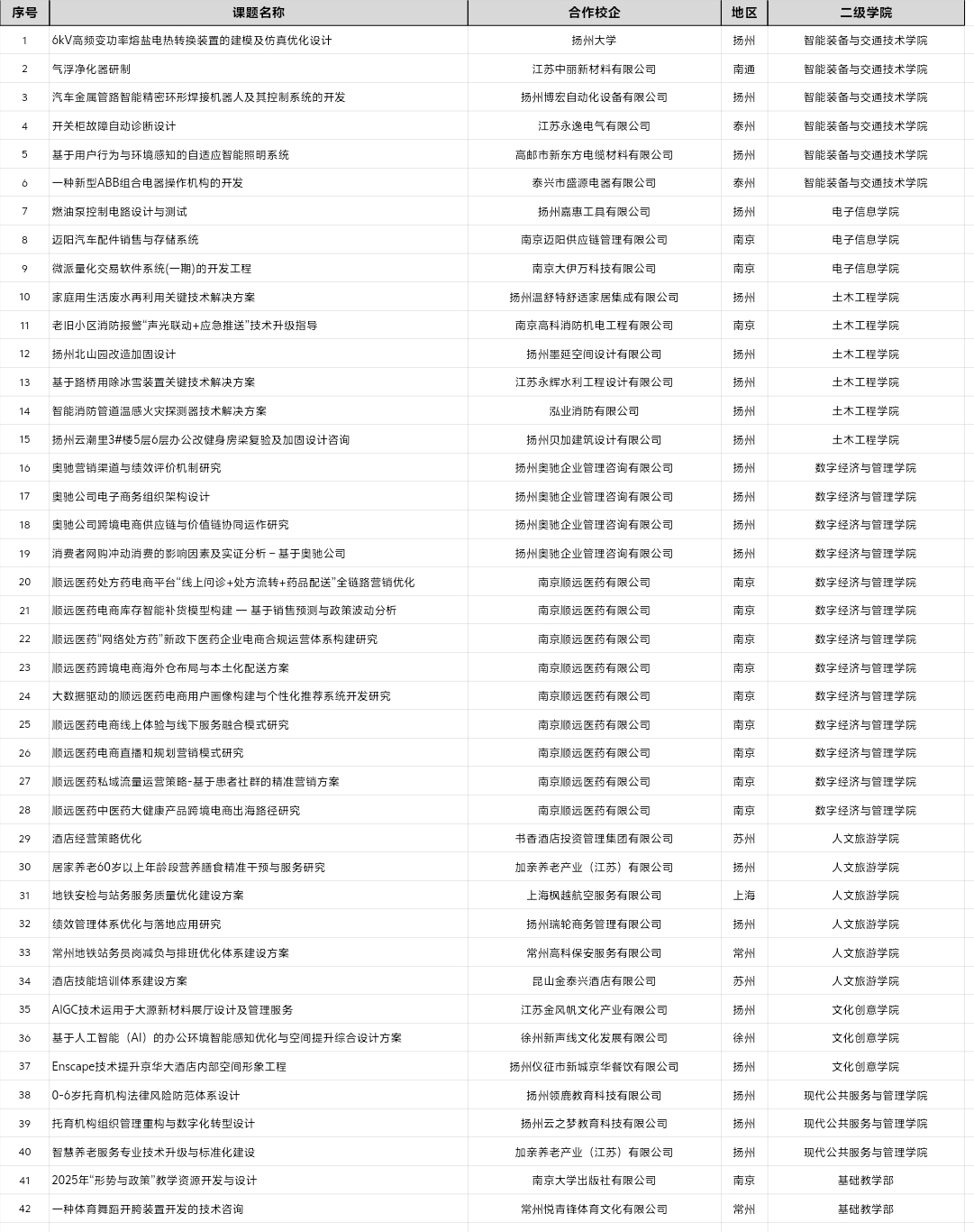 2025年,我校立项市级以上科研项目181项,较2024年增加116项。科研成果获奖28项,获市科协授权的扬州市专家工作站1个。纵向课题金额78.6万元。我校教师主动对接行业发展需求,积极投身校企合作横向课题研究工作,立项校企合作横向课题42项,合同总金额达229万元,充分展现了我校服务社会发展的能力与教师团队的科研实践活力。